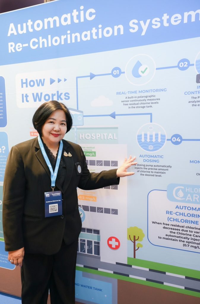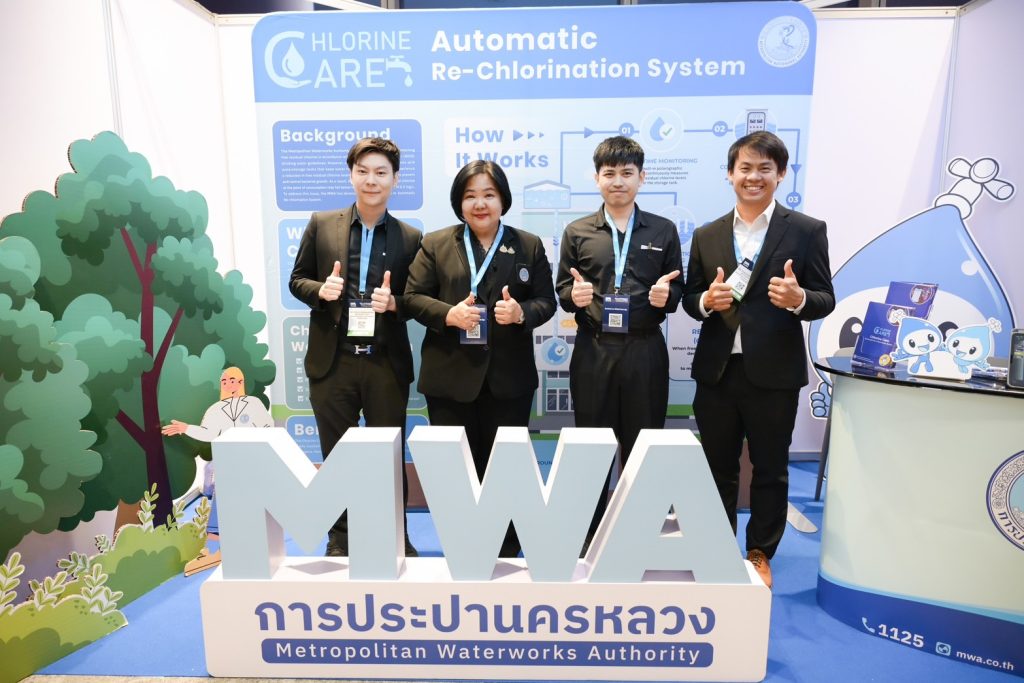 ภายในงาน กปน. ได้ร่วมจัดแสดงนิทรรศการในโซน Thai Pavilion โดยนำผลงาน Chlorine Care ระบบเติมคลอรีนอัตโนมัติ ควบคุมคลอรีนอิสระคงเหลือในถังพักน้ำให้ได้ตามเกณฑ์ที่ต้องการอย่างต่อเนื่องอัตโนมัติ สามารถติดตามและควบคุมค่าคลอรีนอิสระคงเหลือได้อย่างแม่นยำ สม่ำเสมอ ตลอด 24 ชั่วโมง